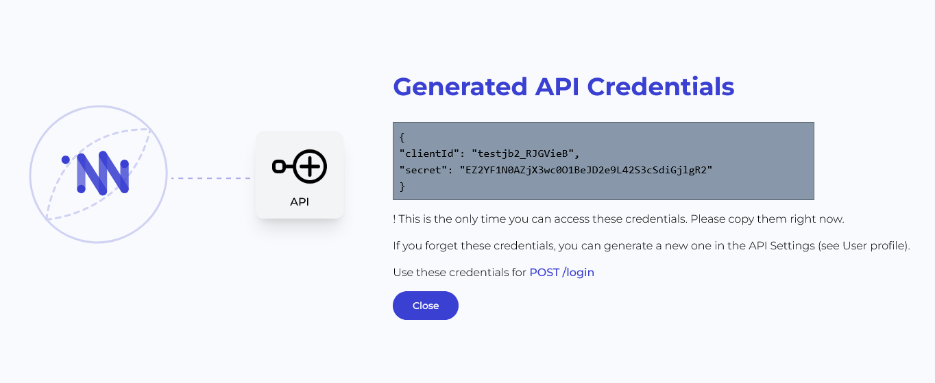 TASK - Save your API Credentials in a safe place, because this is the only time you can access them:
