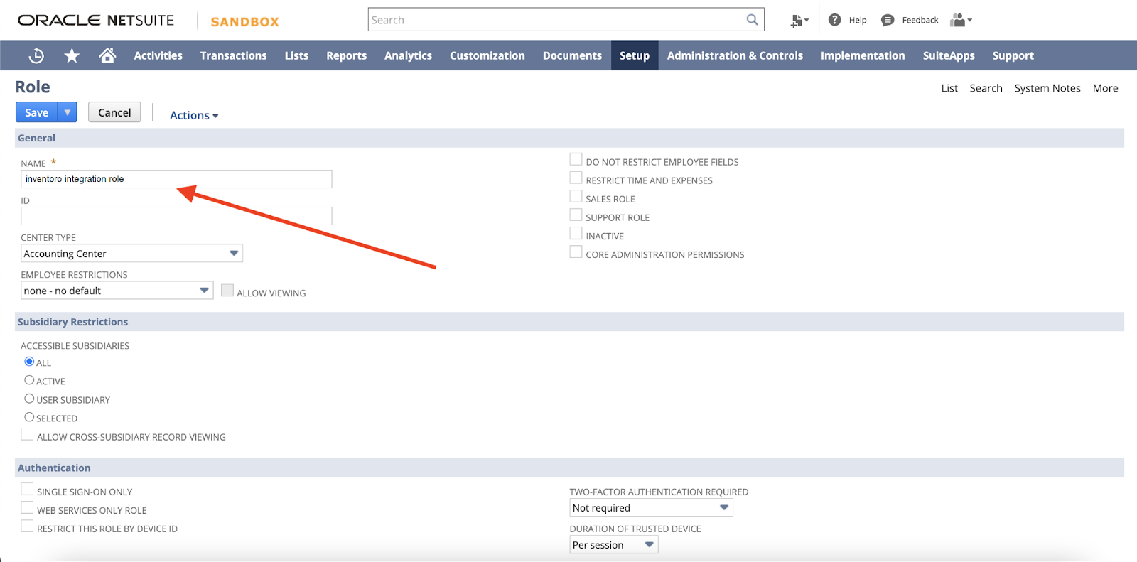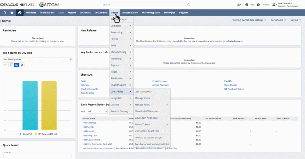 Setup > Users/Roles > Manage Roles > New