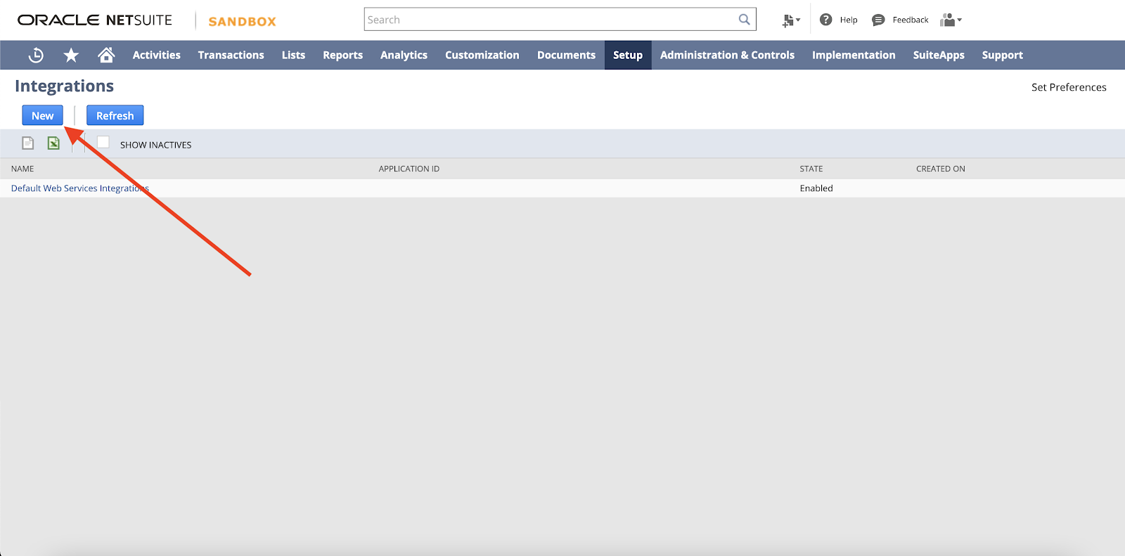 Once you're on the Manage Integrations page, press New