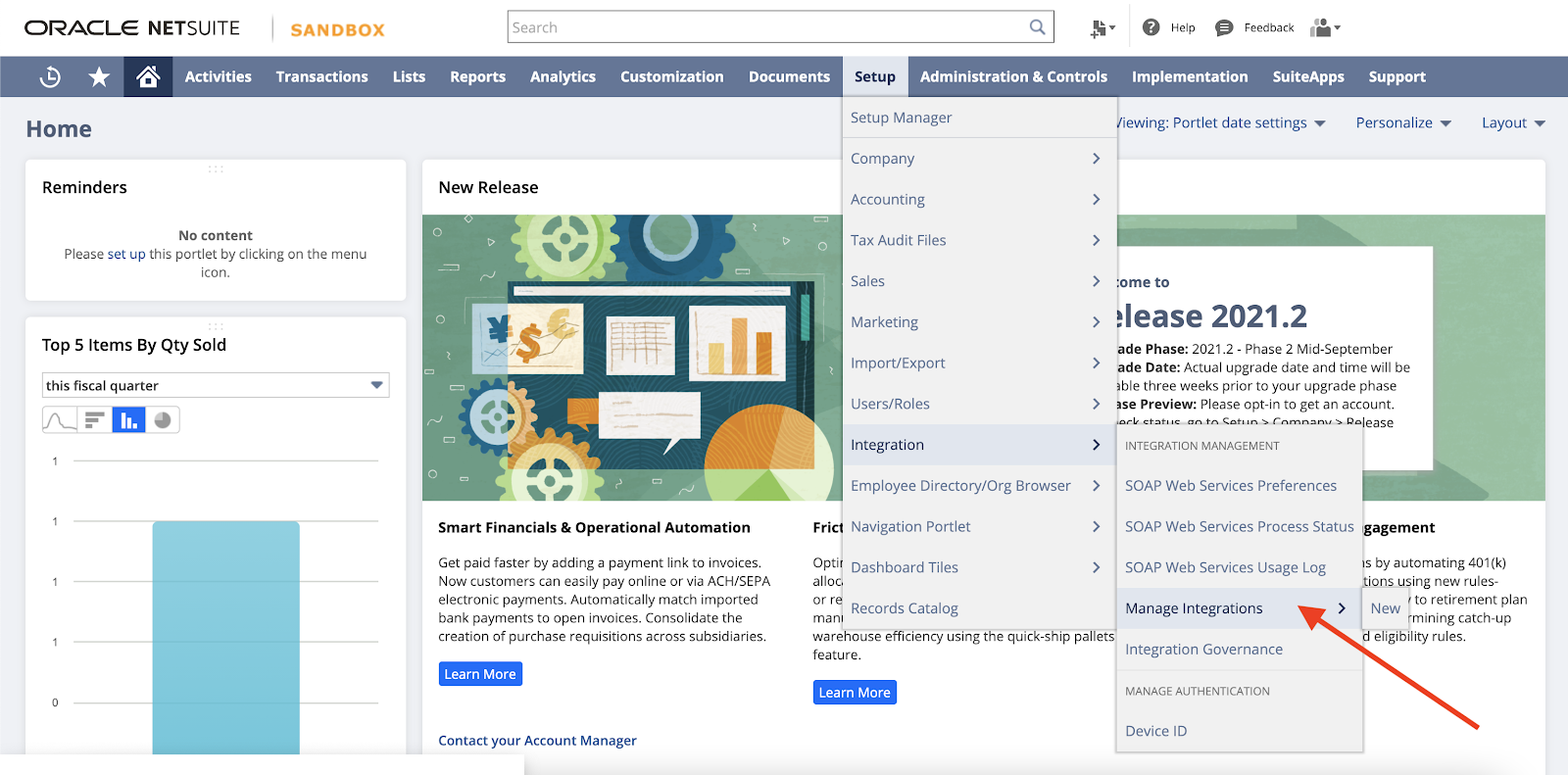 Head to Setup > Integrations > Manage Integrations