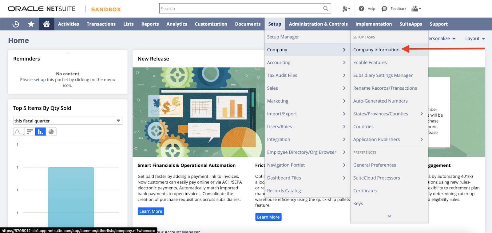 NetSuite Company Information Page