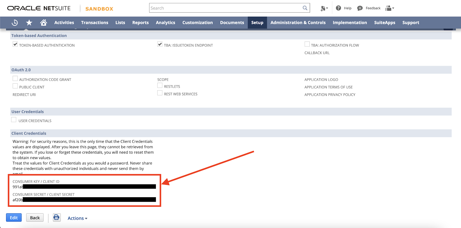 To create a Consumer Key/Secret Pair we will need to create an Integration Record