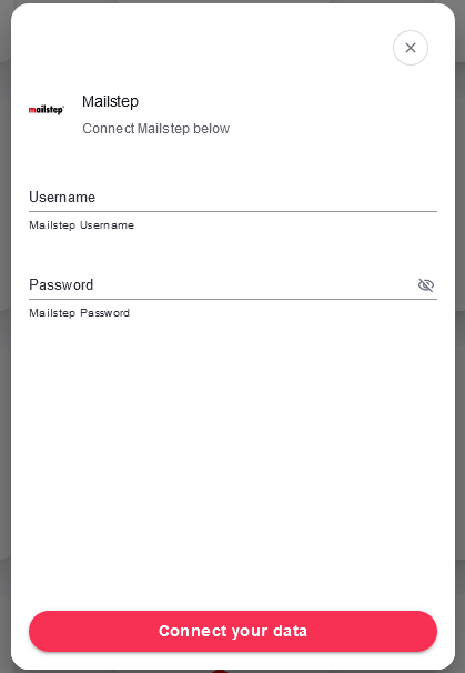 Now that you have selected Mailstep you will then be prompted to insert Username and Password.