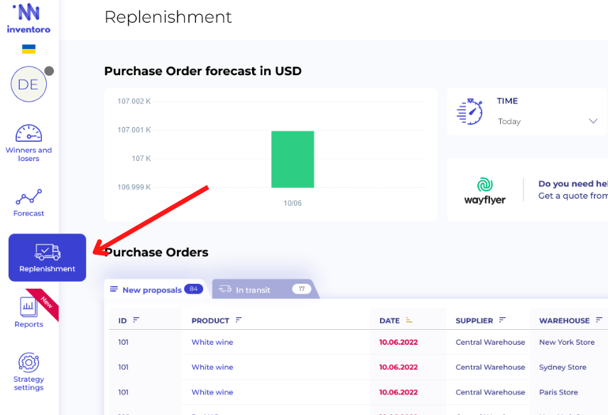 Navigate to Replenishment page from menu.
