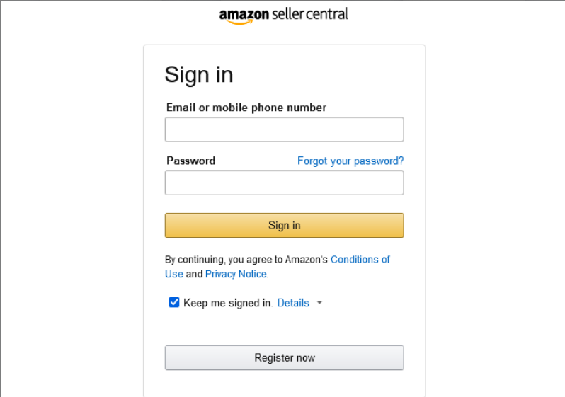 Then, you will be transferred to your Amazon Seller login page - insert your credentials and click Sign In.