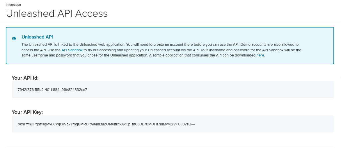 Click on Unleashed API Access