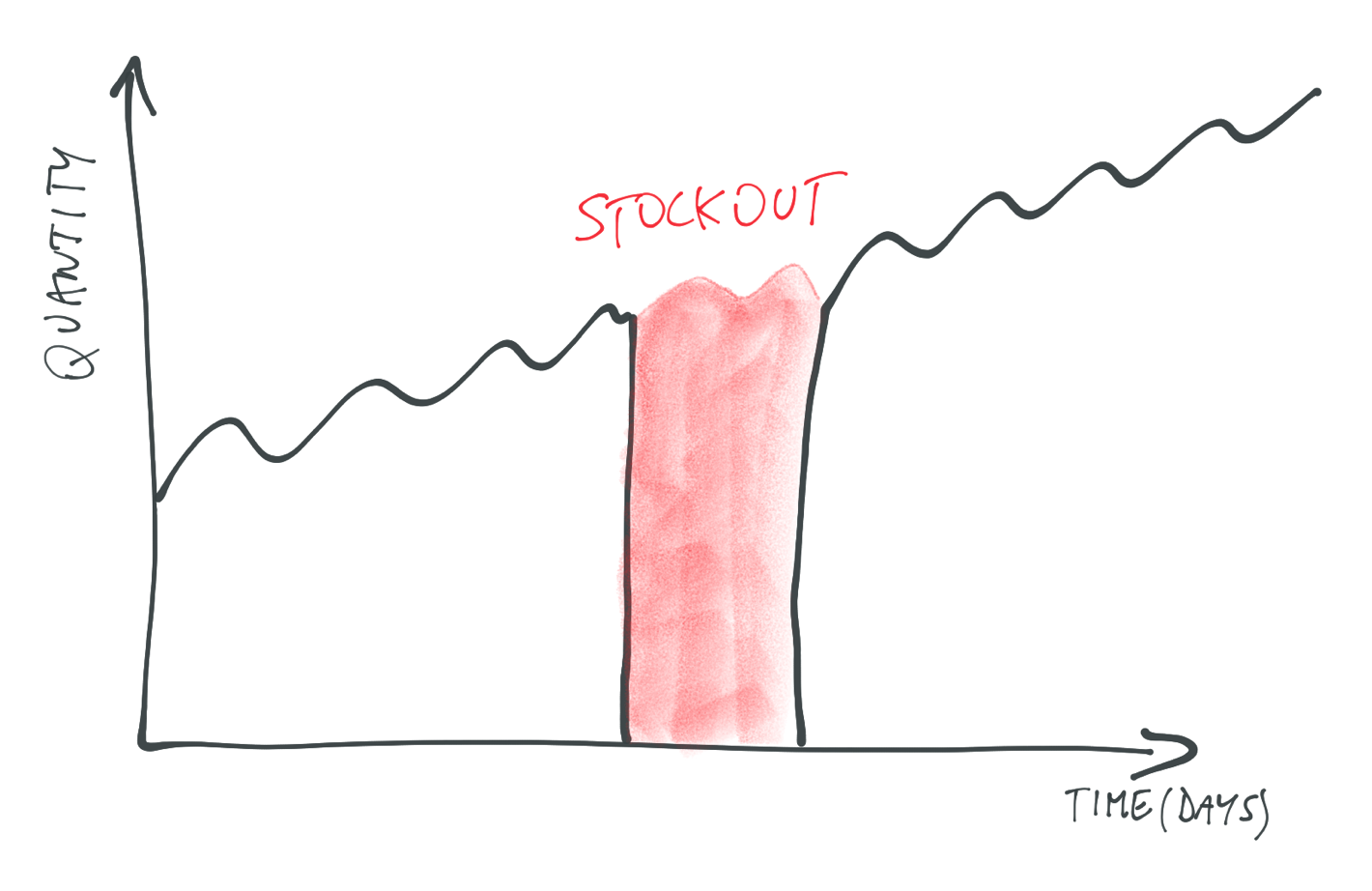 ForesightAI identifies and subsequently analyzes stockouts, periods with no stock on hand. This data is then used to compute lost sales at stockout of a specific item in your warehouse.