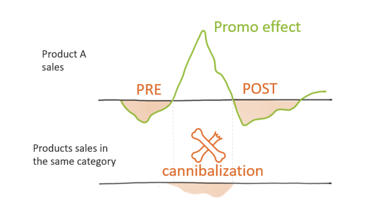 cannibalization effect - when you decide to put some article to the promotion there will be a list of articles which will decrease in sales due to this promotion