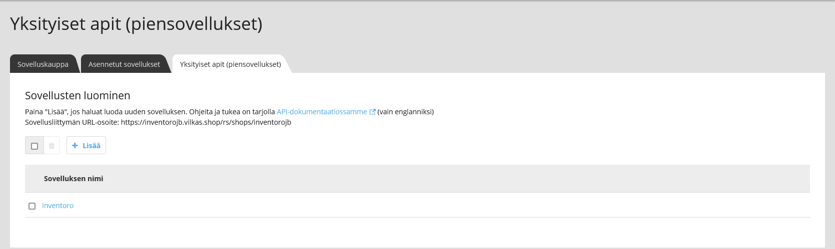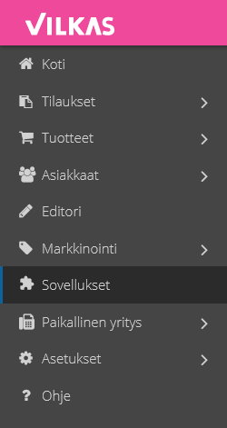From your Vilkas admin, go to Sovellukset