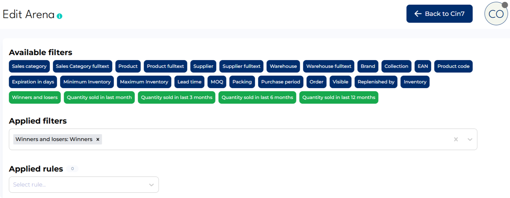 The Edit Arena offers advanced filters to help you select specific SKUs or groups of products for editing. You can work with available filters in several ways: