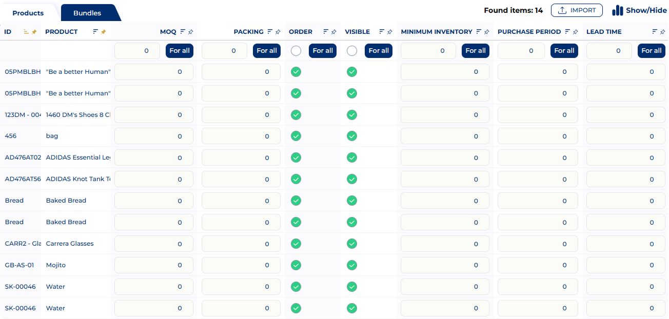 All of the Suppliers settings are applied to all products for that supplier. However, you can refine your forecasts even further by applying controls per product in the Edit Arena. You can filter for a specific suppliers and bulk update all their products. Edit Arena offers a wider range of controls and settings than what is available in the Suppliers settings. Any setting in the Edit Arena will override your Suppliers settings.