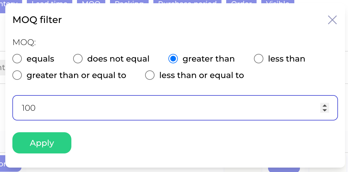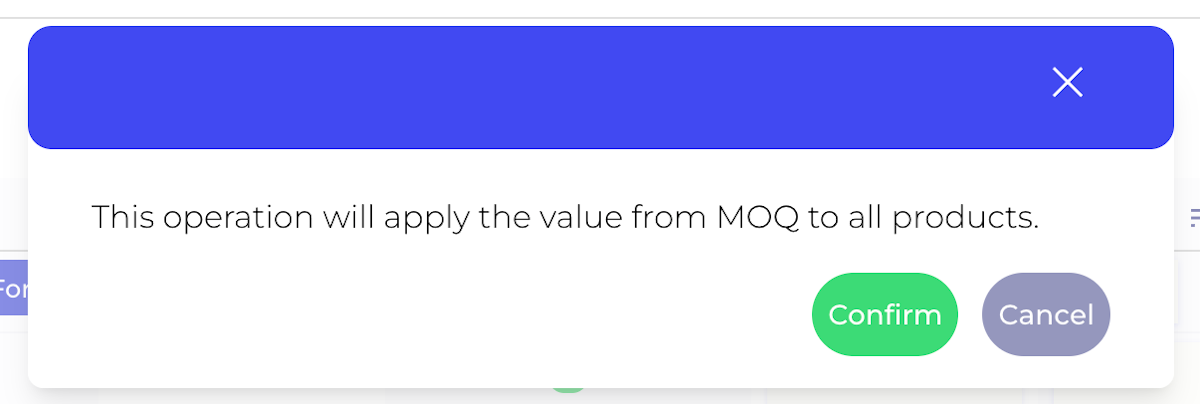 If you want to change, let's say, minimum order quantity for all SKUs in the filter you can use the input in the first row as below.