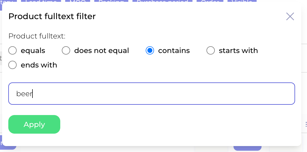 Fulltext in product name, sales category, supplier etc: