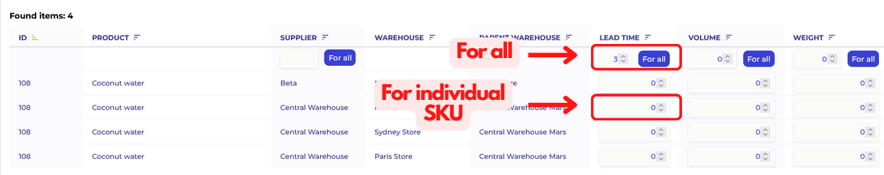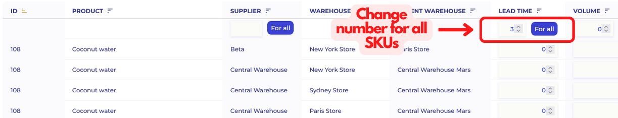 If you need to set a lead time for all SKUs change the number above individual SKU rows and then click Confirm.
