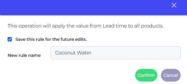 If you'd like to set the automatic rule for future edits, check the box and click Confirm. It will automatically set a lead time number for every future edit with this SKU.