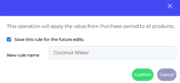 If you'd like to set the automatic rule for future edits, check the box and click Confirm. It will automatically set a purchase order period number for every future edit with this SKU.