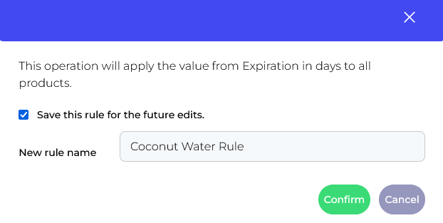 Check the Save this rule for future edits if you want to set this for all future changes for these products.